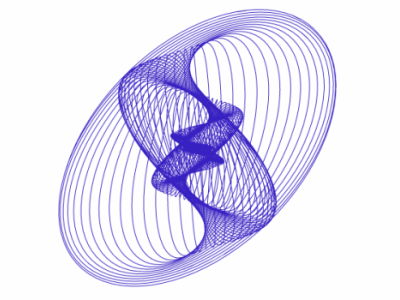 This is an animated javascript implementation of a harmonograph. A harmonograph is a mechanical apparatus that employs pendulums to create a geometric image. The drawings created typically are Lissajous curves, or related drawings of greater complexity.
