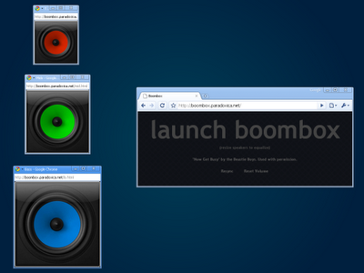 Boombox is a web-based media player with a three-channel equalizer. The volume of each channel is controlled by resizing the respective windows.